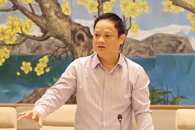 | Phó Chủ nhiệm Văn phòng Quốc hội Vũ Minh Tuấn phát biểu tại Phiên họp |
