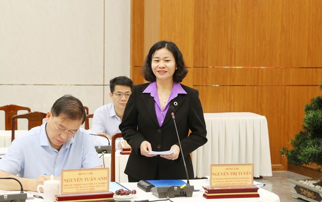 Phó Chủ tịch Ủy ban Trung ương MTTQ Việt Nam, Chủ tịch Hội Liên hiệp Phụ nữ Việt Nam Nguyễn Thị Tuyến phát biểu tại buổi làm việc. Ảnh: Văn Dũng