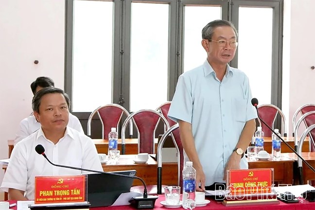 Phó Chủ tịch Thường trực Ủy ban MTTQ tỉnh Đinh Công Thực phát biểu tại buổi làm việc