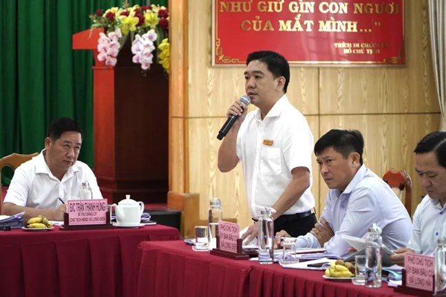 | Lãnh đạo xã Long Điền báo cáo tại buổi làm việc. Ảnh:Thanh Chiêu |