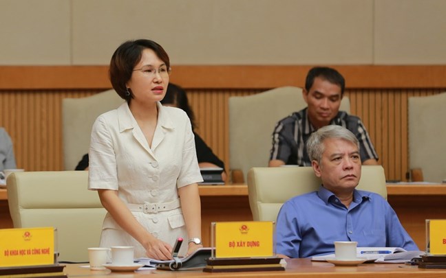 | Đại diện Bộ Xây dựng báo cáo tại cuộc họp - Ảnh: VGP/Minh Khôi |
