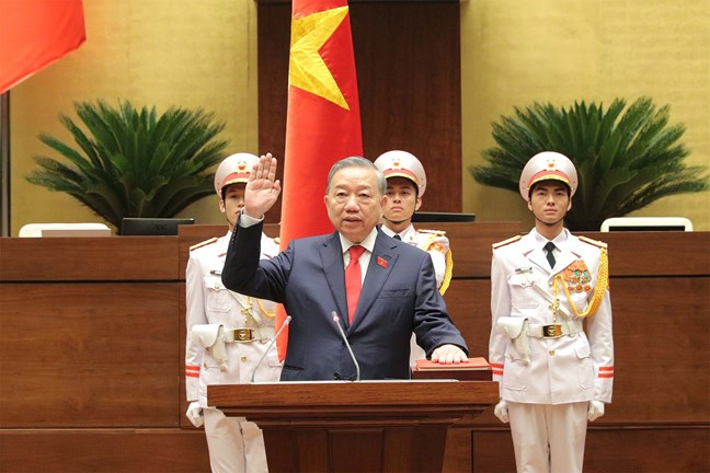 | Chủ tịch nước Cộng hòa xã hội chủ nghĩa Việt Nam Tô Lâm tuyên thệ nhậm chức. Ảnh: Hồ Long |