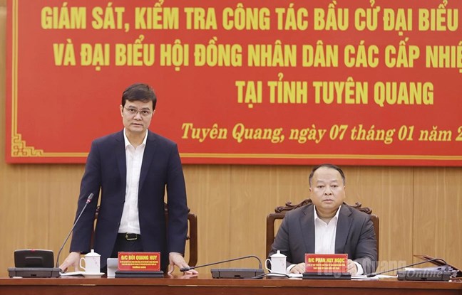 Phát biểu kết luận buổi giám sát, Bí thư thứ nhất Trung ương Đoàn Bùi Quang Huy đánh giá cao công tác chuẩn bị bầu cử của Tuyên Quang, trong đó có “4 điểm sáng” là: Công tác chỉ đạo tốt, các văn bản ban hành nghiêm túc, chặt chẽ, đúng quy định, đảm bảo tiến độ đề ra; công tác kiểm tra, giám sát được quan tâm, có sự chủ động; công tác tuyên truyền đa dạng, kết hợp giữa truyền thống và hiện đại, phù hợp với thực tiễn địa phương; nắm chắc tình hình, lường trước các vấn đề có thể phát sinh trong bầu cử.