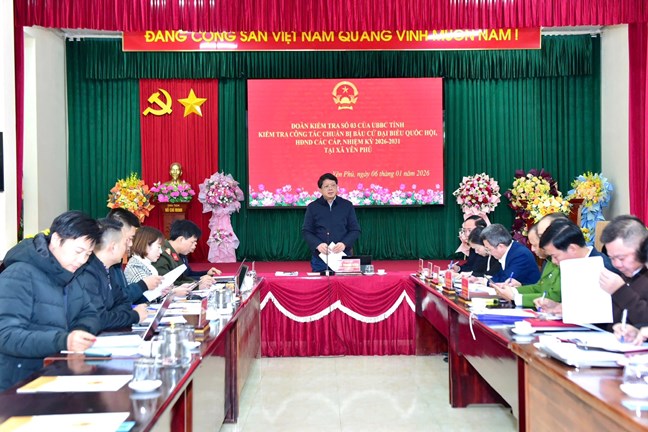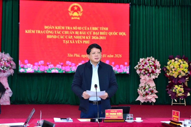 (Mặt trận) - Chiều 6/1, Đoàn kiểm tra số 3 Ủy ban bầu cử tỉnh Tuyên Quang do ông Hà Trung Kiên, Ủy viên Ban Thường vụ Tỉnh ủy, Phó Chủ tịch Thường trực Ủy ban MTTQ Việt Nam tỉnh, Phó Chủ tịch Ủy ban bầu cử tỉnh làm Trưởng đoàn đã kiểm tra công tác chuẩn bị bầu cử đại biểu Quốc hội khóa XVI và đại biểu HĐND các cấp, nhiệm kỳ 2026 – 2031 tại xã Yên Phú.