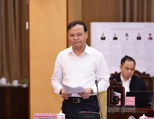 Dự Phiên họp có các đồng chí Ủy viên Ban Thường vụ Tỉnh ủy: ông Hầu Minh Lợi, Phó Chủ tịch Thường trực HĐND tỉnh; ông Nguyễn Mạnh Tuấn, Phó Chủ tịch Thường trực UBND tỉnh; ông Hoàng Gia Long, Phó Chủ tịch UBND tỉnh; bà Lý Thị Lan, Trưởng đoàn ĐBQH hoạt động chuyên trách khóa XV tỉnh Tuyên Quang; ông Hà Trung Kiên, Phó Chủ tịch Thường trực Ủy ban MTTQ Việt Nam tỉnh; Đại tá Lại Tiến Giang, Chỉ huy trưởng Bộ Chỉ huy Quân sự tỉnh; các đồng chí Ủy viên Ủy ban bầu cử tỉnh; Trưởng, Phó trưởng các Tiểu ban và Tổ giúp việc Ủy ban bầu cử tỉnh; bộ phận tham mưu trực tiếp về công tác bầu cử một số đơn vị.