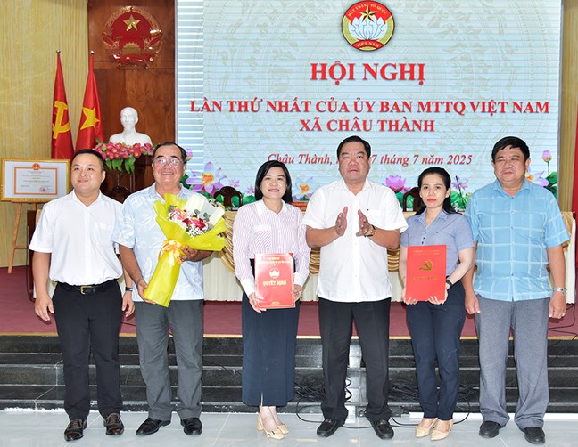 (Mặt trận) -Sáng 17/7, Ủy ban Mặt trận Tổ quốc (MTTQ) Việt Nam xã Châu Thành (tỉnh An Giang) tổ chức hội nghị lần thứ nhất, công bố quyết định của Ban Thường trực Ủy ban MTTQ Việt Nam tỉnh An Giang về việc thành lập Ủy ban MTTQ Việt Nam xã Châu Thành từ ngày 1/7/2025; đồng thời, công nhận 57 ủy viên Ủy ban MTTQ xã nhiệm kỳ 2024-2029.