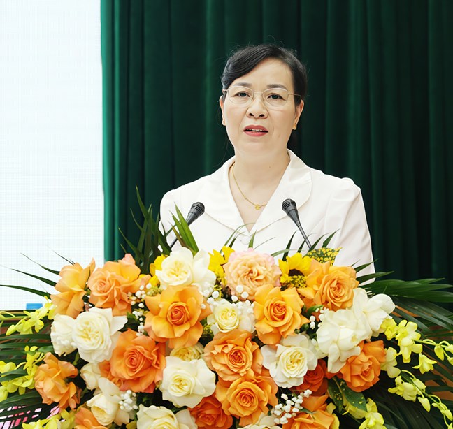 Đồng chí Nguyễn Thị Hà, Ủy viên Ban Thường vụ Tỉnh ủy, Chủ tịch Ủy ban MTTQ tỉnh Bắc Ninh phát biểu kết luận tại hội nghị.