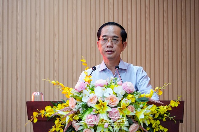 | Phó Chủ tịch UBND tỉnh Huỳnh Chí Nguyện thông tin về tình hình phát triển kinh tế - xã hội của tỉnh |