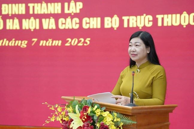 | Đồng chí Nguyễn Lan Hương trao quyết định thành lập các chi bộ mới trực thuộc. Ảnh: PV |