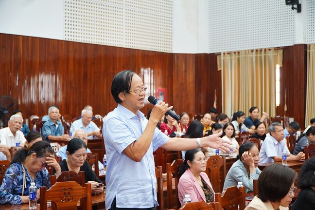 Cử tri Trần Văn Tương (tổ dân phố Trường Đồng, phường Bàn Thạch) phát biểu ý kiến tại Hội nghị tiếp xúc cử tri vừa qua. Ảnh: VINH ANH