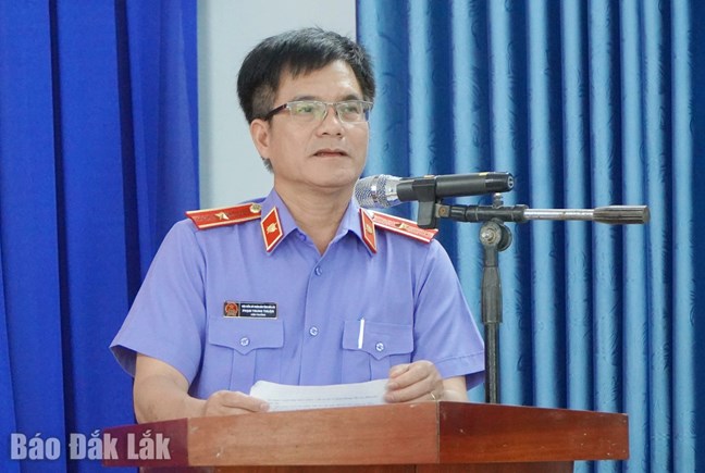 | Ứng cử viên Phạm Trung Thuận, Tỉnh ủy viên, Ủy viên Ban Chấp hành Đảng bộ Các cơ quan Đảng tỉnh, Bí thư Đảng ủy, Viện trưởng Viện Kiểm sát nhân dân tỉnh Đắk Lắk trình bày chương trình hành động trước cử tri. |