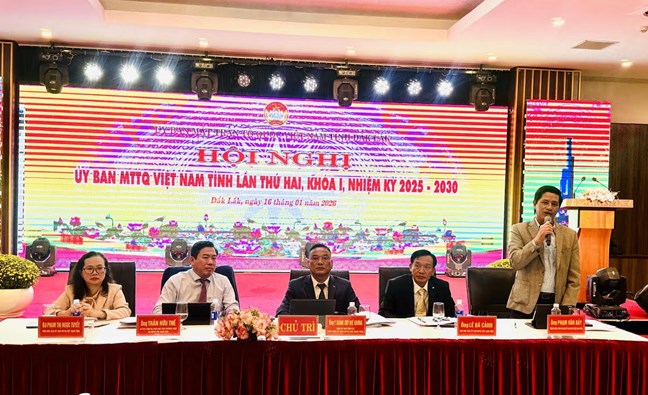 (Mặt trận) - Sáng 16/1, Ủy ban MTTQ Việt Nam tỉnh Đắk Lắk tổ chức Hội nghị Ủy ban MTTQ Việt Nam tỉnh lần thứ Hai, khóa I, nhiệm kỳ 2025 – 2030. Hội nghị đánh giá kết quả công tác Mặt trận năm 2025, thống nhất Chương trình phối hợp và hành động năm 2026; đồng thời biểu dương, khen thưởng các tập thể, cá nhân tiêu biểu trong phong trào thi đua yêu nước giai đoạn 2020 – 2025.