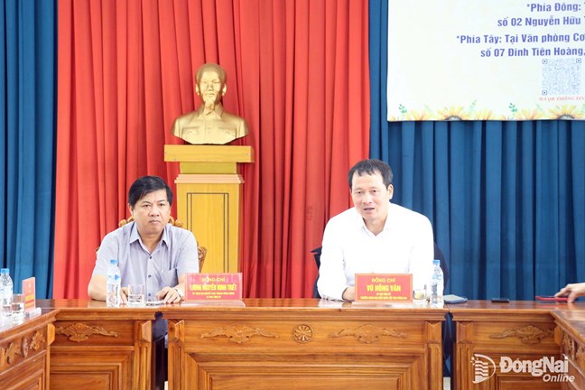 | Ông Vũ Hồng Văn, Bí thư Tỉnh ủy, Trưởng đoàn Đại biểu Quốc hội tỉnh Đồng Nai và ông Lương Nguyễn Minh Triết, Ủy viên dự khuyết Trung ương Đảng, Bí thư Tỉnh ủy Đắk Lắk tại buổi tiếp nhận. Ảnh: Trần Thể |