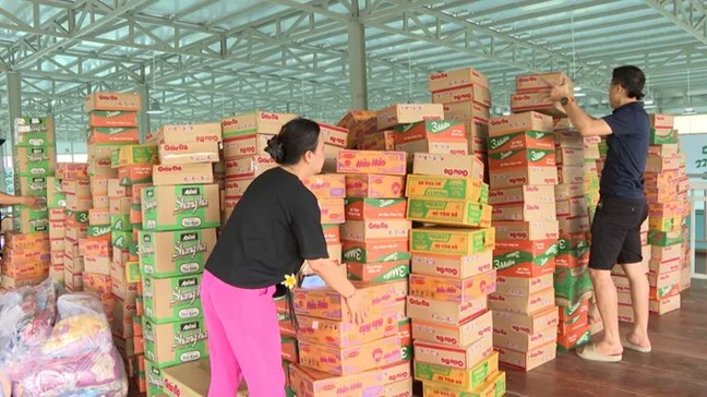 | Hàng hoá, nhu yếu phẩm chuẩn bị đưa đến với bà con vùng bão lũ |