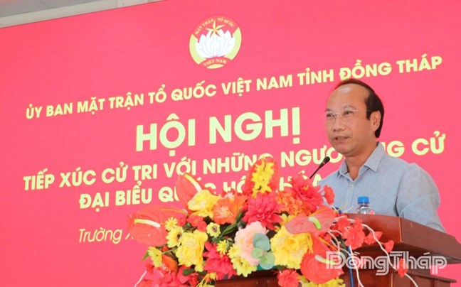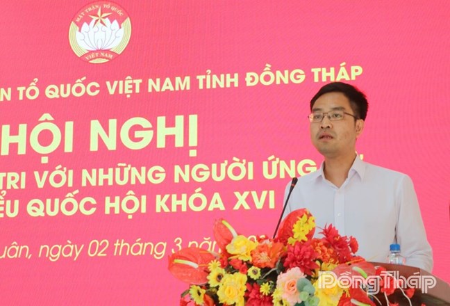 Phát biểu tại hội nghị, Phó Chủ tịch Thường trực Ủy ban Mặt trận Tổ quốc Việt Nam tỉnh Đinh Văn Dũng trân trọng cảm ơn, ghi nhận các ý kiến, kiến nghị và sự ủng hộ của cử tri đối với các ứng cử viên ĐBQH khóa XVI đơn vị bầu cử số 2.