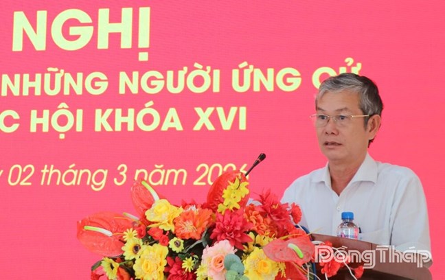Tại hội nghị, đại diện Ủy ban Mặt trận Tổ quốc Việt Nam tỉnh thông qua tiểu sử tóm tắt của các ứng cử viên ĐBQH khóa XVI (nhiệm kỳ 2026 - 2031) đơn vị bầu cử số 2, gồm ông Võ Giáp Hùng, Phó Giám đốc Bệnh viện Đa khoa Tiền Giang thuộc Sở Y tế Đồng Tháp; bà Võ Thị Hoài Ngọc, Phó Giám đốc Công an tỉnh Đồng Tháp; ông Lê Trung Quân, Vụ trưởng, Thư ký Phó Chủ tịch Quốc hội; bà Đỗ Thị Thu Thảo, Chủ tịch Trung ương Hội Chữ thập đỏ Việt Nam; bà Dương Ngọc Vân, Giám đốc Công ty Trách nhiệm hữu hạn Thương mại và Dịch vụ Huy Hoàng.