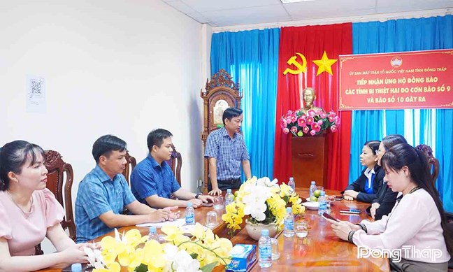 (Mặt trận) - Sáng 21/10, tại trụ sở Ủy ban Mặt trận Tổ quốc (MTTQ) Việt Nam tỉnh Đồng Tháp, Ban Thường trực Ủy ban MTTQ Việt Nam tỉnh tổ chức tiếp nhận kinh phí ủng hộ đồng bào các tỉnh miền Trung và miền Bắc bị thiệt hại nặng do bão số 9, số 10 vừa qua.