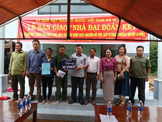 (Mặt trận) -Chiều 10-6, Ủy ban MTTQ Việt Nam huyện Ia Grai (tỉnh Gia Lai) phối hợp với Ủy ban MTTQ Việt Nam xã Ia Pếch bàn giao nhà “Đại đoàn kết” cho gia đình ông Rơ Châm Kin-làng O Grang thuộc diện hộ nghèo khó khăn về nhà ở.