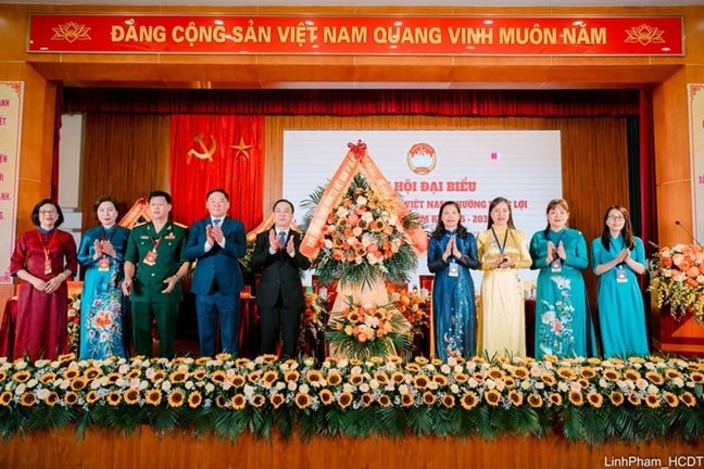 | Đồng chí Đặng Thị Phương Hoa - Phó Chủ tịch Ủy ban MTTQ Việt Nam thành phố Hà Nội cùng Đoàn công tác tặng hoa chúc mừng Đại hội |