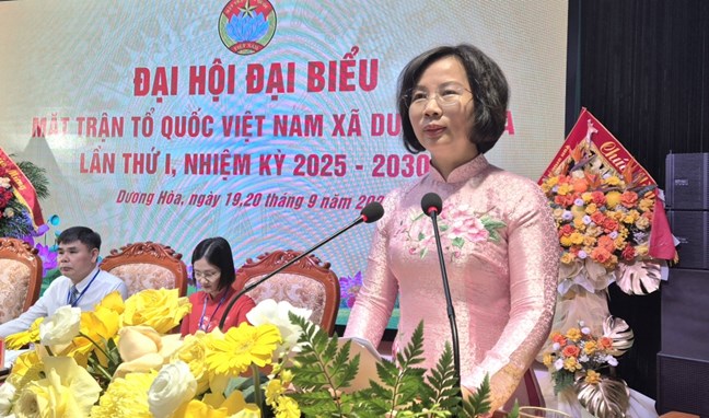 Phát biểu chỉ đạo tại đại hội, bà Bùi Huyền Mai, Ủy viên Ban Thường vụ Thành ủy, Phó Chủ tịch Thường trực Ủy ban MTTQ Việt Nam TP Hà Nội cho biết, xã Dương Hòa là mảnh đất giàu truyền thống cách mạng, nơi in đậm dấu ấn của những phong trào cách mạng, có nền văn hóa, học tập, là nơi hội tụ, gắn bó của nhiều thế hệ người Hà Nội.