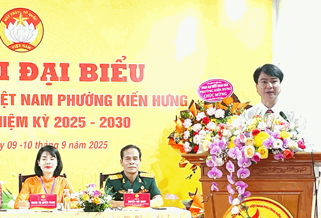 Phát biểu tại ĐH, Phó Chủ tịch Ủy ban MTTQ Việt Nam TP Hà Nội Phạm Anh Tuấn đã đánh giá cao hoạt động của MTTQ Việt Nam phường Kiến Hưng trong thời gian qua. Để thực hiện tốt hơn hoạt động của Ủy ban MTTQ Việt Nam phường trong nhiệm kỳ mới, ông Phạm Anh Tuấn đề nghị Ủy ban MTTQ Việt Nam phường Kiến Hưng tiếp tục nêu cao quyết tâm thực hiện thành công tác nhiệm kỳ mới, tập trung giải quyết các vấn đề đó là: “tập hợp, huy động sức mạnh đại đoàn kết toàn dân tộc, mở rộng thành viên, nhất là các thành viên có uy tín trong cộng đồng; đẩy mạnh các cuộc vận động hiệu quả, gắn với thực hiện nhiệm vụ chính trị của địa phương và nhu cầu chính đáng của Nhân dân; vận động Nhân dân tích cực tham gia vào xây dựng đô thị văn minh hiện đại, giải phóng mặt bằng dự án của quốc gia, TP trên địa bàn; xây dựng ít nhất 1 mô hình, công trình cụ thể sáng – xanh – sạch đẹp; góp phần xây dựng đảng, chính quyền trong sạch, vững mạnh; phát huy vai trò ban giám sát cộng đồng trong việc giám sát các vấn đề Nhân dân quan tâm; tổ chức tốt đối thoại của người đứng đầu với Nhân dân; bầu cử Quốc hội và HĐND các cấp nhiệm kỳ 2026-2031; đẩy mạnh chuyển đổi số trong công tác mặt trận, bảo vệ nền tảng tư tưởng của Đảng; chăm lo cho các gia đình, người yếu thế, phát huy tinh thần tương thân, tương ái trong cộng đồng”.