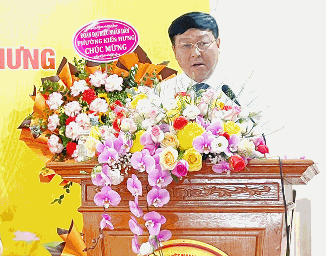 | Bí thư Đảng ủy, Chủ tịch HĐND phường Kiến Hưng Nguyễn Tiến Quyết phát biểu chỉ đạo tại Đại hội |