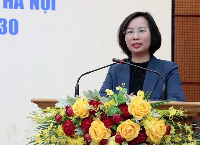 Chủ tịch Ủy ban Mặt trận Tổ quốc Việt Nam TP Hà Nội Bùi Huyền Mai phát biểu