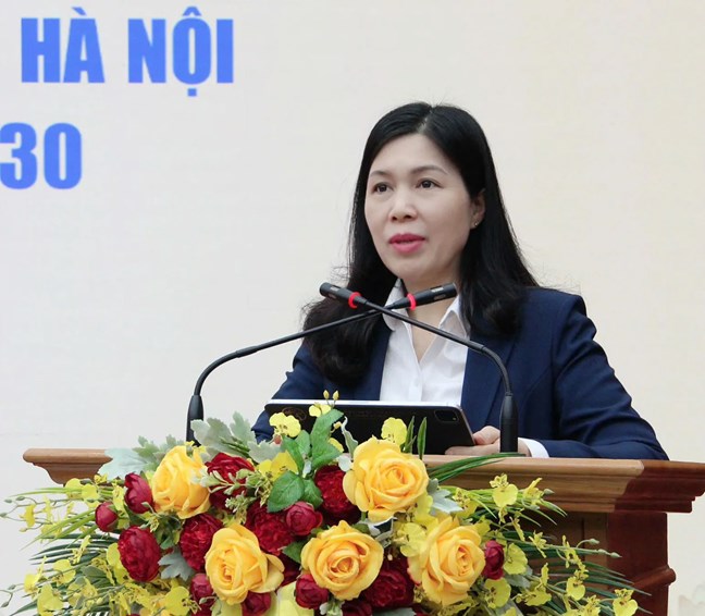 Tân Phó Chủ tịch Thường trực Ủy ban Mặt trận Tổ quốc Việt Nam TP Hà Nội Trần Thị Phương Hoa phát biểu