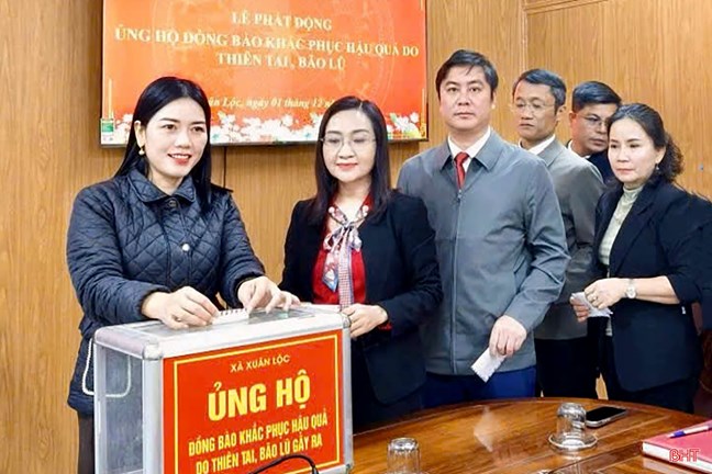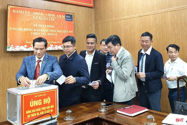 | Tại xã Xuân Lộc, toàn thể cán bộ, công chức cơ quan Đảng ủy - UBND - HĐND - Ủy ban MTTQ và các đoàn thể chính trị phát huy truyền thống tương thân tương ái cùng chung tay chia sẻ, ủng hộ đồng bào vượt qua giai đoạn khó khăn do bão lũ gây ra |