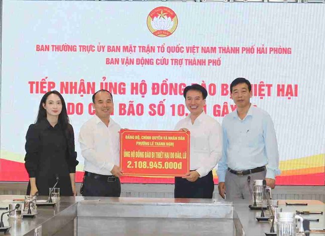 Ngày 30/10, Ủy ban Mặt trận Tổ quốc (MTTQ) Việt Nam - Ban Vận động cứu trợ thành phố Hải Phòng đã tổ chức tiếp nhận kinh phí ủng hộ đồng bào các tỉnh miền Trung bị ảnh hưởng bởi bão số 10 và bão số 11.