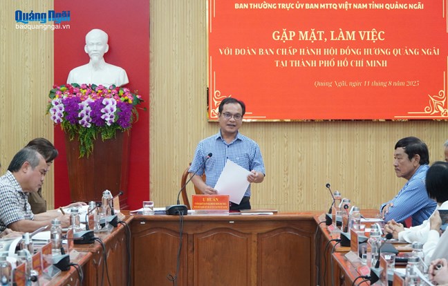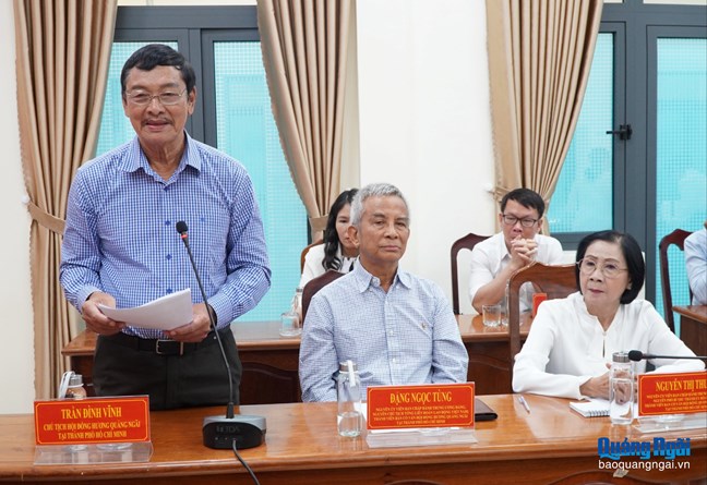 Trao đổi tại buổi làm việc, những người con của quê hương Quảng Ngãi đang sinh sống, làm việc tại TP. Hồ Chí Minh đều bày tỏ vui mừng trước sự phát triển của tỉnh. Đồng thời, bày tỏ tin tưởng với tiềm năng phong phú về tài nguyên thiên nhiên, vị trí địa chính trị - kinh tế đặc biệt, tỉnh Quảng Ngãi sau hợp nhất kỳ vọng sẽ tạo nên bước đột phá trong thu hút đầu tư, phát triển hạ tầng, nâng cao đời sống nhân dân.