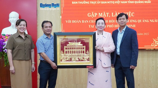 | Hội đồng hương Quảng Ngãi tại TP.Hồ Chí Minh tặng quà lưu niệm Ban Thường trực Ủy ban MTTQ Việt Nam tỉnh |