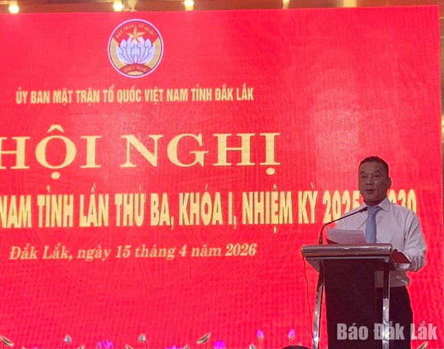 (Mặt trận) - Sáng 15/4, Ban Thường trực Ủy ban Mặt trận Tổ quốc Việt Nam tỉnh Đắk Lắk tổ chức Hội nghị Ủy ban Mặt trận Tổ quốc Việt Nam tỉnh lần thứ 3, khóa I, nhiệm kỳ 2025 - 2030.