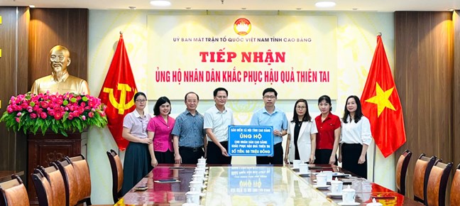 | Lãnh đạo Ủy ban Mặt trận Tổ quốc tỉnh tiếp nhận kinh phí của Công ty cổ phần Khoáng sản và Luyện kim Cao Bằng trao hỗ trợ |