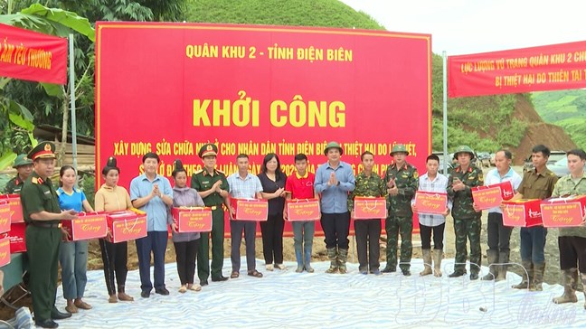 Tại lễ khởi công, lãnh đạo Quân Khu 2, tỉnh Điện Biên và Bộ chỉ huy Quân sự tỉnh đã trao tặng 30 suất quà cho 30 hộ dân bị thiệt hại do mưa lũ.