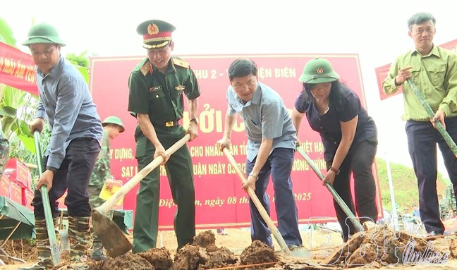 | Lãnh đạo Quân khu 2 và tỉnh Điện Biên thực hiện nghi thức khởi công xây dựng nhà ở cho người dân bị thiệt hại do mưa lũ |