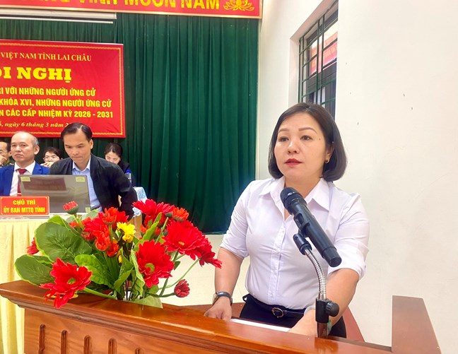Tại hội nghị, đại diện Ban Thường trực Ủy ban MTTQ Việt Nam xã Phong Thổ, tỉnh Lai Châu đã công bố tiểu sử tóm tắt của các ứng cử viên đại biểu Quốc hội khóa XVI và đại biểu HĐND các cấp nhiệm kỳ 2026 - 2031. Theo đó, có 5 người ứng cử đại biểu Quốc hội khóa XVI, 8 người ứng cử đại biểu HĐND tỉnh Lai Châu và 5 người ứng cử đại biểu HĐND xã Phong Thổ nhiệm kỳ 2026 - 2031.