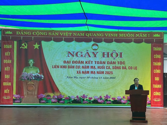 * Sáng 10/11, ông Tống Thanh Hải - Ủy viên Ban Thường vụ Tỉnh ủy, Phó Chủ tịch Thường trực UBND tỉnh dự và động viên bà con nhân dân tại Ngày hội Đại đoàn kết toàn dân tộc liên khu dân cư: Nậm Mạ, Huổi Ca, Sông Đà, Co Lẹ (xã Nậm Mạ).