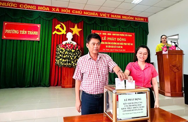 Trước đó, chiều 7/10, Đảng ủy, HĐND, UBND và Ủy ban MTTQ Việt Nam phường Tiến Thành (Lâm Đồng ) tổ chức lễ phát động quyên góp ủng hộ đồng bào các tỉnh, thành phố bị ảnh hưởng bởi bão số 10.