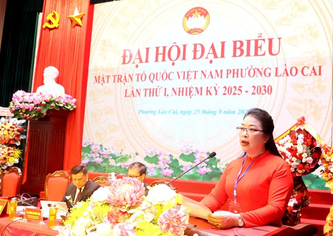 Đại hội đại biểu Mặt trận Tổ quốc Việt Nam phường Lào Cai lần thứ I, nhiệm kỳ 2025 - 2030 đề ra 15 chỉ tiêu và 7 chương trình hành động. Hiệp thương cử 56 Ủy viên Ủy ban Mặt trận Tổ quốc Việt Nam phường Lào Cai khóa I và cử đoàn đại biểu đi dự Đại hội đại biểu Mặt trận Tổ quốc Việt Nam tỉnh lần thứ I, nhiệm kỳ 2025 - 2030.