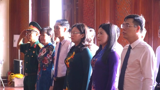 | Các đại biểu tham dự Lễ dâng hương, báo công tại Nhà lưu niệm Chủ tịch Hồ Chí Minh |