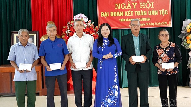 * Chiều 15/11, bà Vũ Thị Hiền Hạnh - Phó Chủ tịch UBND tỉnh đã đến dự và chung vui với bà con khu dân cư thôn Nà Đình, xã Cảm Nhân.