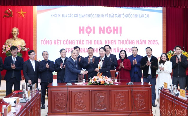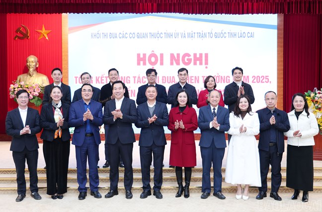 Khối thi đua các cơ quan thuộc Tỉnh ủy và Mặt trận Tổ quốc tỉnh Lào Cai được thành lập theo Quyết định số 1028/QĐ-UBND ngày 4/9/2025 của UBND tỉnh, gồm 10 đơn vị thành viên: Ban Tuyên giáo và Dân vận Tỉnh ủy; Trường Chính trị tỉnh; cơ quan Ủy ban Kiểm tra Tỉnh ủy; Ban Nội chính Tỉnh ủy; Văn phòng Tỉnh ủy; Ban Tổ chức Tỉnh ủy; Đảng ủy UBND tỉnh; Đảng ủy các cơ quan Đảng tỉnh; Ủy ban MTTQ Việt Nam tỉnh; Báo và Phát thanh, Truyền hình tỉnh.