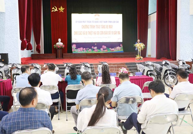 Phát biểu tại buổi trao tặng, đồng chí Giàng Thị Dung - Phó Bí thư Tỉnh ủy, Chủ tịch Ủy ban MTTQ Việt Nam tỉnh Lào Cai nhấn mạnh: Những chiếc xe máy tuy giá trị vật chất không lớn nhưng có ý nghĩa thiết thực, là nguồn động viên tinh thần giúp các địa phương chủ động hơn trong công tác cứu trợ, tuyên truyền, vận động Nhân dân và ứng phó kịp thời khi có tình huống khẩn cấp.