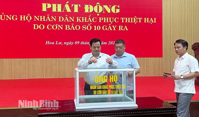 (Mặt trận) - Chiều 9/10, Ủy ban MTTQ Việt Nam phường Hoa Lư tổ chức phát động quyên góp ủng hộ nhân dân khắc phục thiệt hại do cơn bão số 10 gây ra. Tới dự có đồng chí Bùi Thành Đông, Tỉnh ủy viên, Bí thư Đảng ủy, Chủ tịch HĐND phường Hoa Lư; các đồng chí lãnh đạo phường, toàn thể cán bộ, công chức, viên chức, người lao động của phường.
