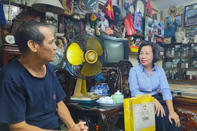 Trong đó, đoàn đã đến thăm, tặng quà bà Nguyễn Thị Bích Hà - hội viên Chi hội phụ nữ số 41, Hội LHPN phường Ba Đình. Bà Hà có hoàn cảnh khó khăn, là phụ nữ đơn thân, bị khuyết tật, sức khỏe yếu, không có lương hưu, hay nguồn thu nhập ổn định. Dù cuộc sống hằng ngày gặp nhiều trở ngại cả về thể chất lẫn tinh thần, bà Hà vẫn luôn giữ tinh thần lạc quan, ý chí vươn lên, không trông chờ, ỷ lại.