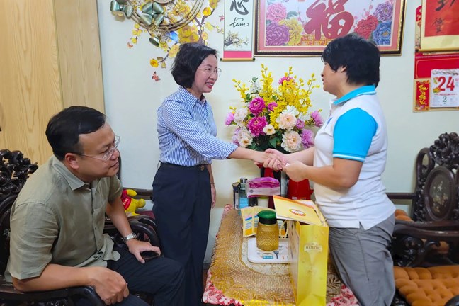 | Phó Chủ tịch Thường trực Uỷ ban MTTQ Việt Nam TP Hà Nội Bùi Huyền Mai thăm, tặng quà bà Nguyễn Thị Bích Hà, Hội LHPN phường Ba Đình |