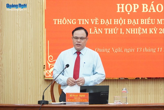 Phát biểu tại buổi họp báo, Phó Chủ tịch Ủy ban MTTQ Việt Nam tỉnh Hồ Ngọc Thịnh trân trọng cảm ơn sự quan tâm, đồng hành của các cơ quan báo chí, phóng viên, biên tập viên đã tham dự và chia sẻ nhiều ý kiến tâm huyết.