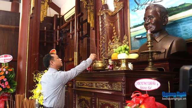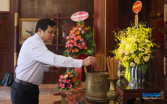 Cũng trong sáng nay, Ủy viên dự khuyết Trung ương Đảng, Phó Bí thư Thường trực Tỉnh ủy, Trưởng đoàn ĐBQH tỉnh, Chủ tịch Ủy ban MTTQ Việt Nam tỉnh U Huấn, cùng các đồng chí lãnh đạo tỉnh đã đến dâng hương tưởng nhớ và tri ân những công lao to lớn của đồng chí Nguyễn Nghiêm đối với phong trào cách mạng và quá trình xây dựng Đảng bộ tỉnh Quảng Ngãi.