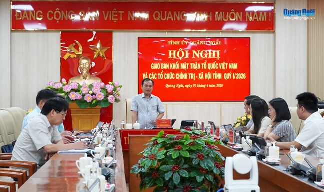 Phó Bí thư Thường trực Tỉnh ủy Quảng Ngãi U Huấn đánh giá cao nỗ lực của các cơ quan, đơn vị trong triển khai nhiệm vụ được giao, đồng thời đề nghị trong quý II/2026, Mặt trận Tổ quốc và các tổ chức chính trị - xã hội tiếp tục bám sát chỉ đạo của Trung ương, của tỉnh để cụ thể hóa và triển khai hiệu quả nhiệm vụ được giao.